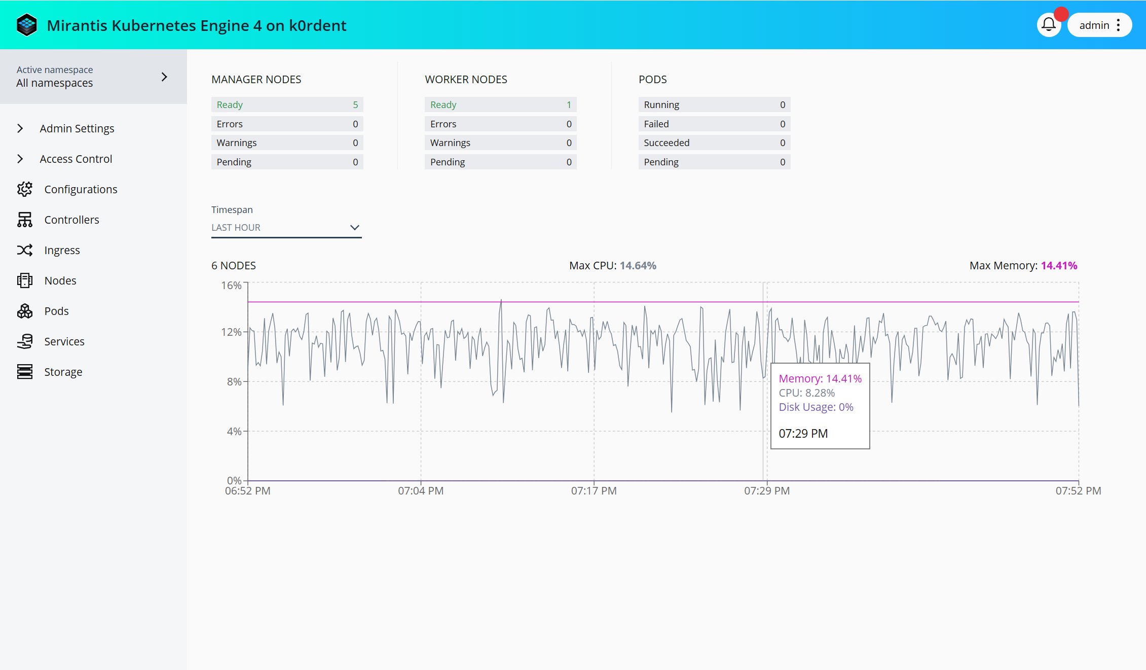 The MKE 4k Dashboard add-on provides a web UI that you can use to manage Kubernetes resources: